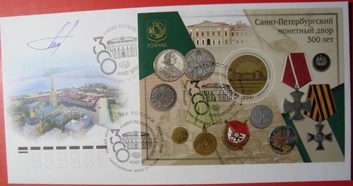 В этот раз мне повезло, на обращение в адрес директора Санкт-Петербургского монетного двора на момент празднования 300-летия СПМД, ныне руководителя офиса в Санкт-Петербурге – советника генерального директора АО «Гознак» Александра Олеговича Балунова, был получен конверт с гашением именно 12.12.2024 , как я понимаю, сувенирным штемпелем, хотя в каталоге АО «Марка» он отсутствует.