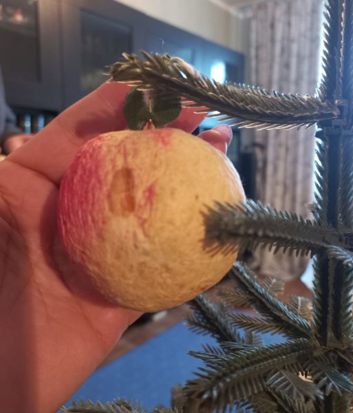 Во-первых, искусственным происхождением самих елей. Во-вторых, часть украшений — современные аналоги. Некоторые ёлочные игрушки — подлинные экземпляры, но не все: на исторических подсвечниках — современные свечи, так как старые давно сгорели, а золочёные орехи, конфеты, сладости были съедены детьми.