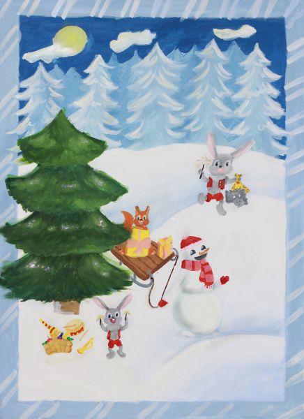 — Когда я предложила ребятам сделать большие стилизованные открытки к Новому году, дети буквально загорелись, с большим интересом окунувшись в творческий процесс, — продолжает Елена Эдуардовна. — Перед этим на одном из занятий я им подробно рассказала об искусстве плаката, о возможных сюжетах и наиболее удачных цветовых решениях и, разумеется, о самих мастерах малой книжной графики, являющихся авторами этих открыток. Все-таки раньше подобные открытки, выходившие в 60-80-е годы многомиллионными тиражами, доверяли создавать только подлинным мастерам своего дела. Как видите, наши дети тоже постарались. Многие даже свои собственные идеи предложили и воплотили их в жизнь. Со стороны, конечно, виднее, но мне кажется, что сам дух праздника, присущий советской новогодней открытке, нашим детям передать удалось.