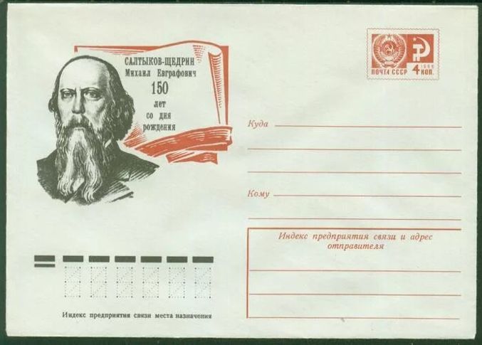 175-летие со дня рождения Салтыкова-Щедрина было отмечено выпуском почтовой карточки с оригинальной маркой.