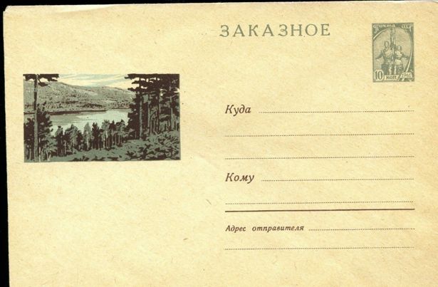 На конверте изображено озеро Большое Миассово, которое будет упомянуто в статье ещё раз.