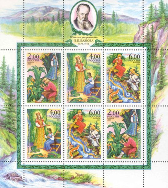 №912 – 914, 2004 г. Сказы П.П. Бажова. К 125-летию со дня рождения П.П. Бажова (1879-1950), писателя. Художник – Федотова А.