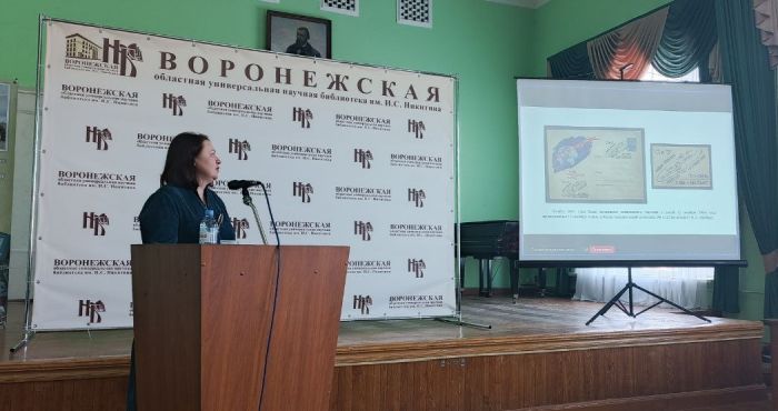 Старший научный сотрудник АУК ВО ИКЦ «Дворцовый комплекс Ольденбургских», председатель Воронежского отделения Союза филателистов России (СФР) — Светлана Михайловна Мишурова выступила с докладом: «К.П. Феоктистов на государственных знаках почтовой оплаты (ГЗПО) России и других стран мира».