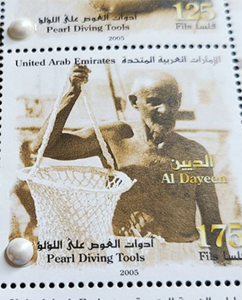 В 2005 году почта Объединённых Арабских Эмиратов выпустила марки, посвящённые добыче жемчуга. История добычи жемчуга на этих территориях насчитывает более 7 тысяч лет. В 1100-х годах эмират Рас-эль-Хайма был одним из процветающих крупных регионов торговли жемчугом. Большинство местных жителей занимались его добычей, расселяясь по прибрежной территории. Так были основаны два крупнейших города страны — Дубай и Абу-Даби.