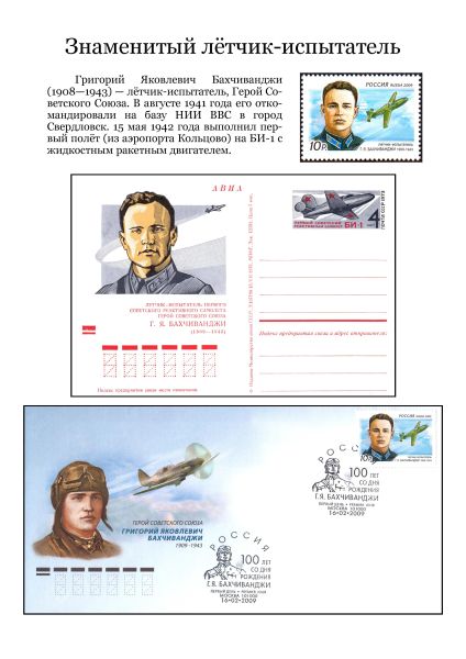 Григорий Яковлевич Бахчиванджи (1908-1943) — лётчик-испытатель, Герой Советского Союза. В августе 1941 года его откомандировали на базу НИИ ВВС в город Свердловск. 15 мая 1942 года выполнил первый полёт (из аэропорта Кольцово) на БИ-1 с жидкостным ракетным двигателем.