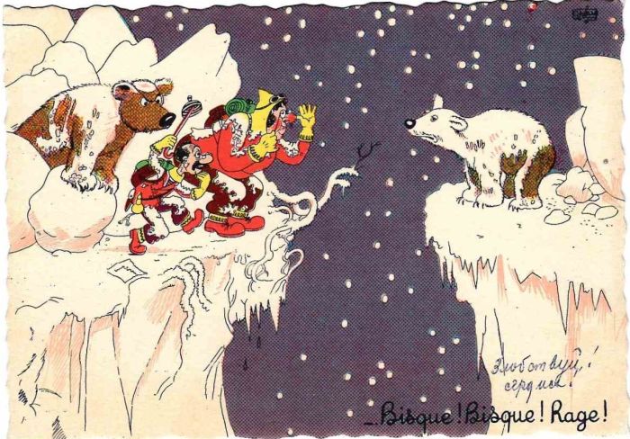 Невозможно объяснить, почему какие-то вещи кажутся нам забавными. Но самоуверенные альпинисты, изображенные на этой зарубежной открытке, определенно заслуживают, чтобы над ними посмеялись.
