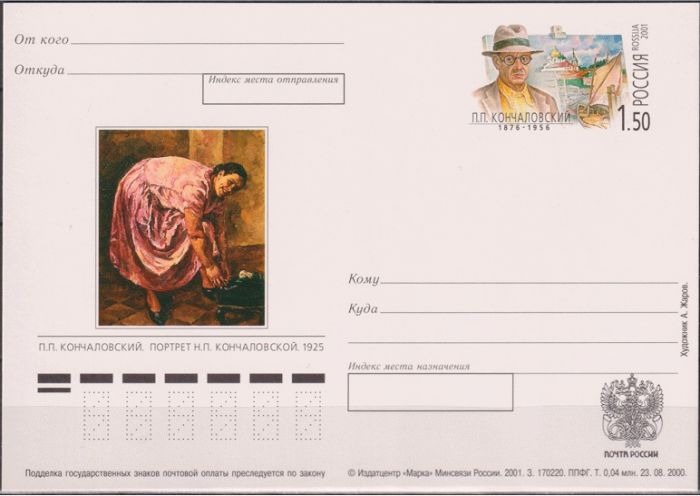 В 2001 году вышла карточка с оригинальной маркой с портретом П.П. Кончаловского. На карточке изображен портрет Н.П. Кончаловской.