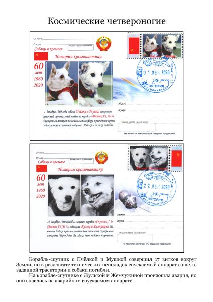 1 декабря 1960 года собаки Пчелка и Мушка совершили суточный орбитальный полет на корабле «Восток 1К №5». Спускаемый аппарат не вошел в расчетное время и был взорван системой подрыва. Пчелка и Мушка погибли.