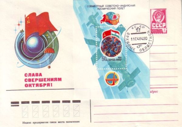 Такой была космическая почта совместного международного советско-индийского полета первого космонавта Индии Ракеш Шарма.