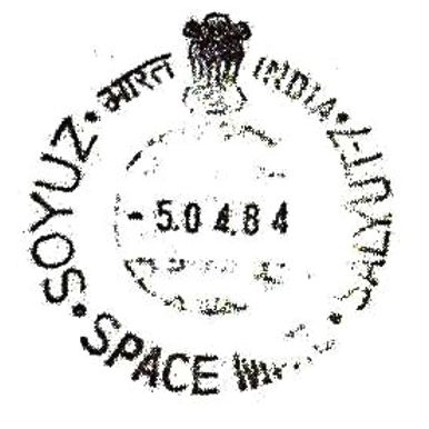 Однако использование подлинных штемпелей почты СССР и Индии на этом не заканчивалось. 11 апреля 1984 года космонавты Ю.Малышев, Г.Стрекалов и индийский космонавт Р.Шарма на корабле «Союз Т-10» вернулись на Землю в районе города Аркалык.