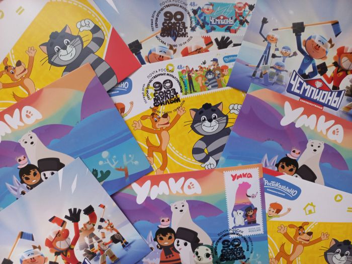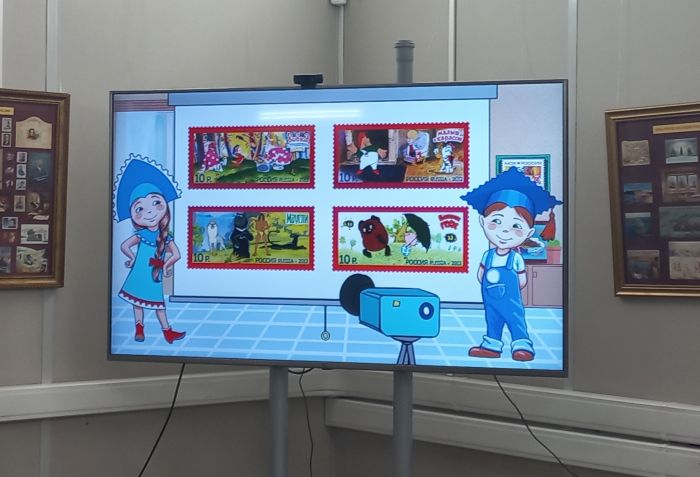 Персонажи этих трёх мультсериалов АО «Киностудия "Союзмультфильм"» изображены на почтовых марках. Об этом собравшимся рассказали самые обаятельные «сотрудники» АО «Марка» Филя и Весточка.