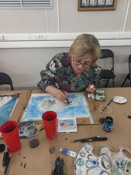 Мазок за мазком, и вот мы выполнили свою миссию: еще один белый медведь застыл в акварельных штрихах.