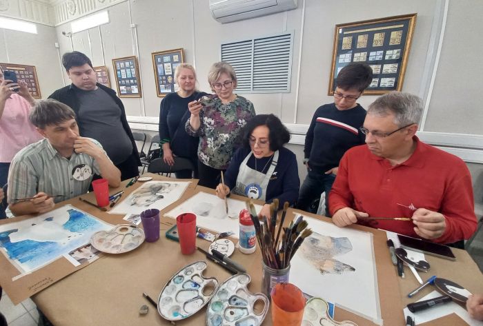 Все-таки талантливые у нас коллекционеры! Всего лишь пара часов — и вот оно, чудо! Одни картины — это уже готовые эскизы для будущих марок и открыток. А другие займут почетное место на стене и будут напоминать о прошедшей творческой встрече. Можно показывать их гостям со словами: «Видите этот дерзкий мазок, посыпанный солью? Это был переворот в моём творческом сознании!»
