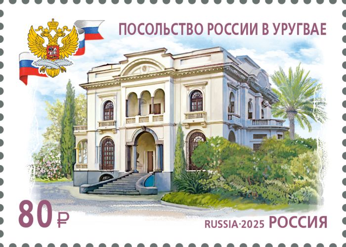 На почтовых марках изображены здания Генконсульства России в Стамбуле, Посольства России в Германии и Посольства России в Уругвае.