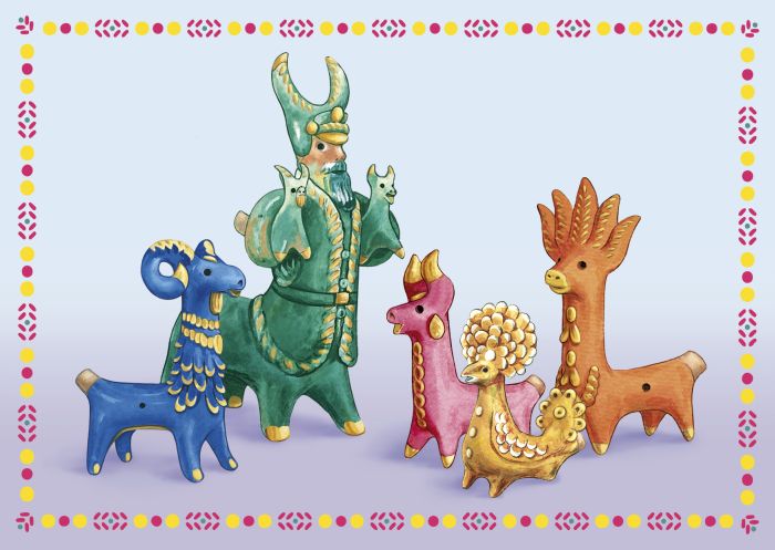 На почтовой марке изображены символичные образы глиняных игрушек, соответствующие традициям художественного промысла, сложившегося на территории Пензенской области.