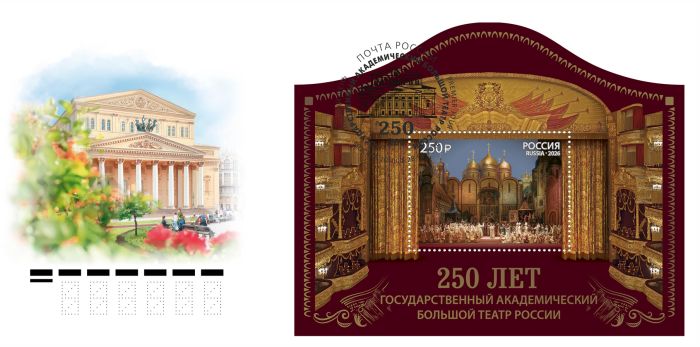 28 марта в почтовое обращение вышел блок, посвящённый 250-летию Государственного академического Большого театра России.